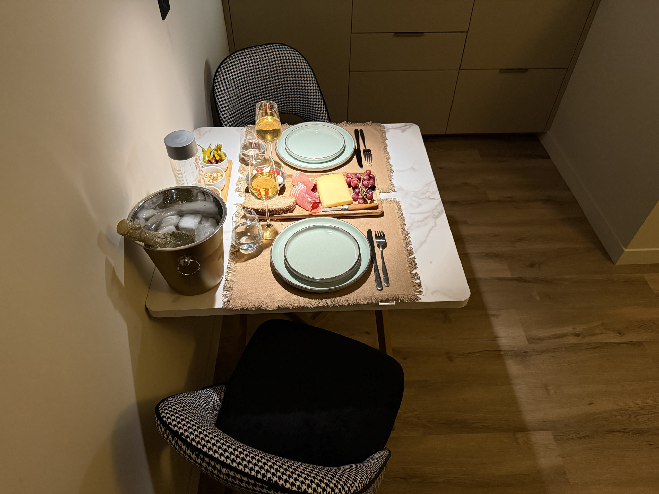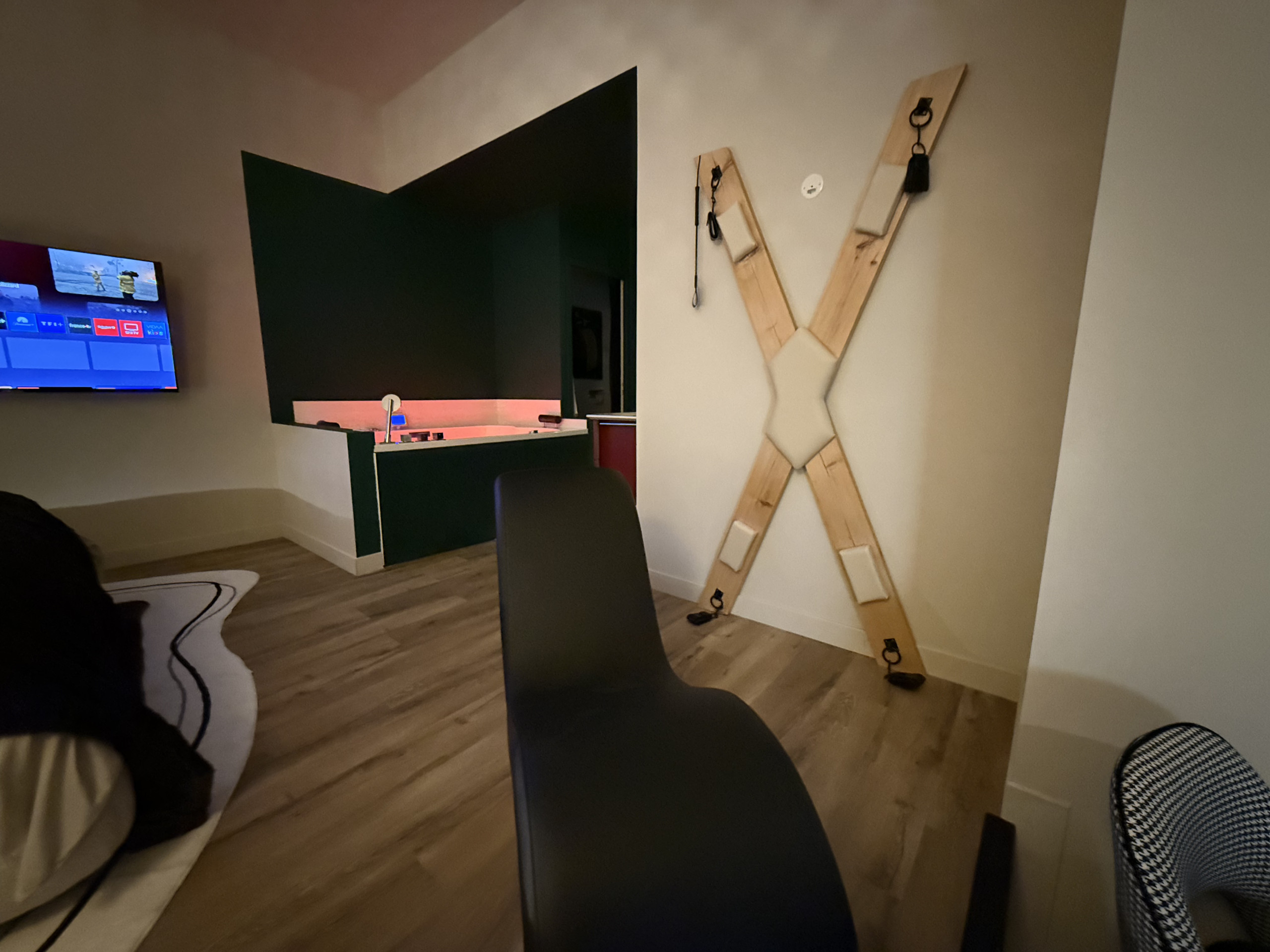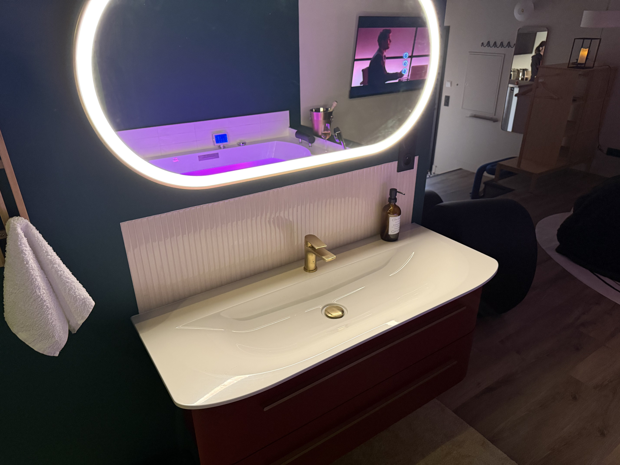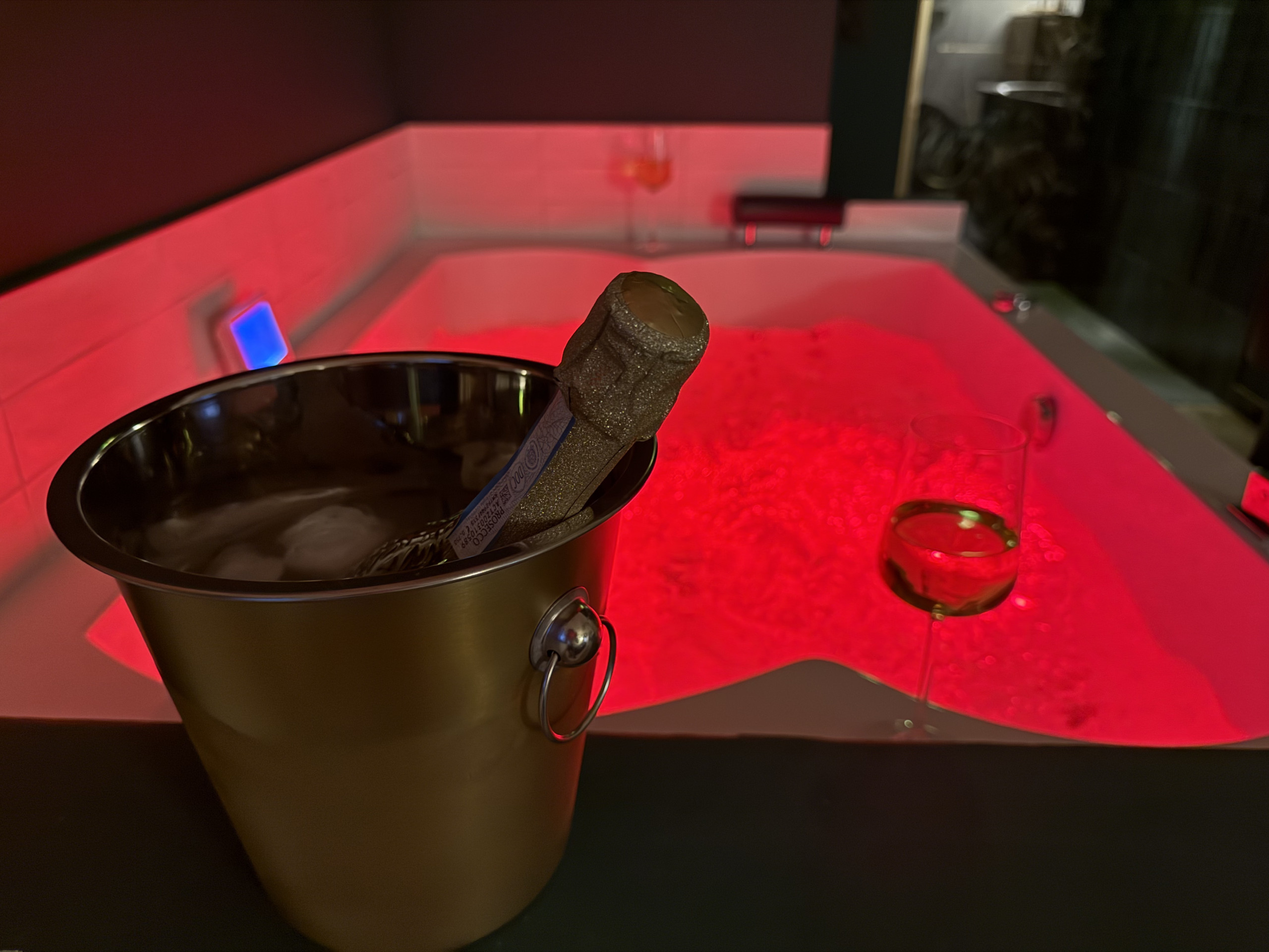Dès votre arrivée, plongez dans une ambiance intimiste et élégante, avec éclairages tamisés et décoration soigneusement pensée pour une escapade romantique à deux.