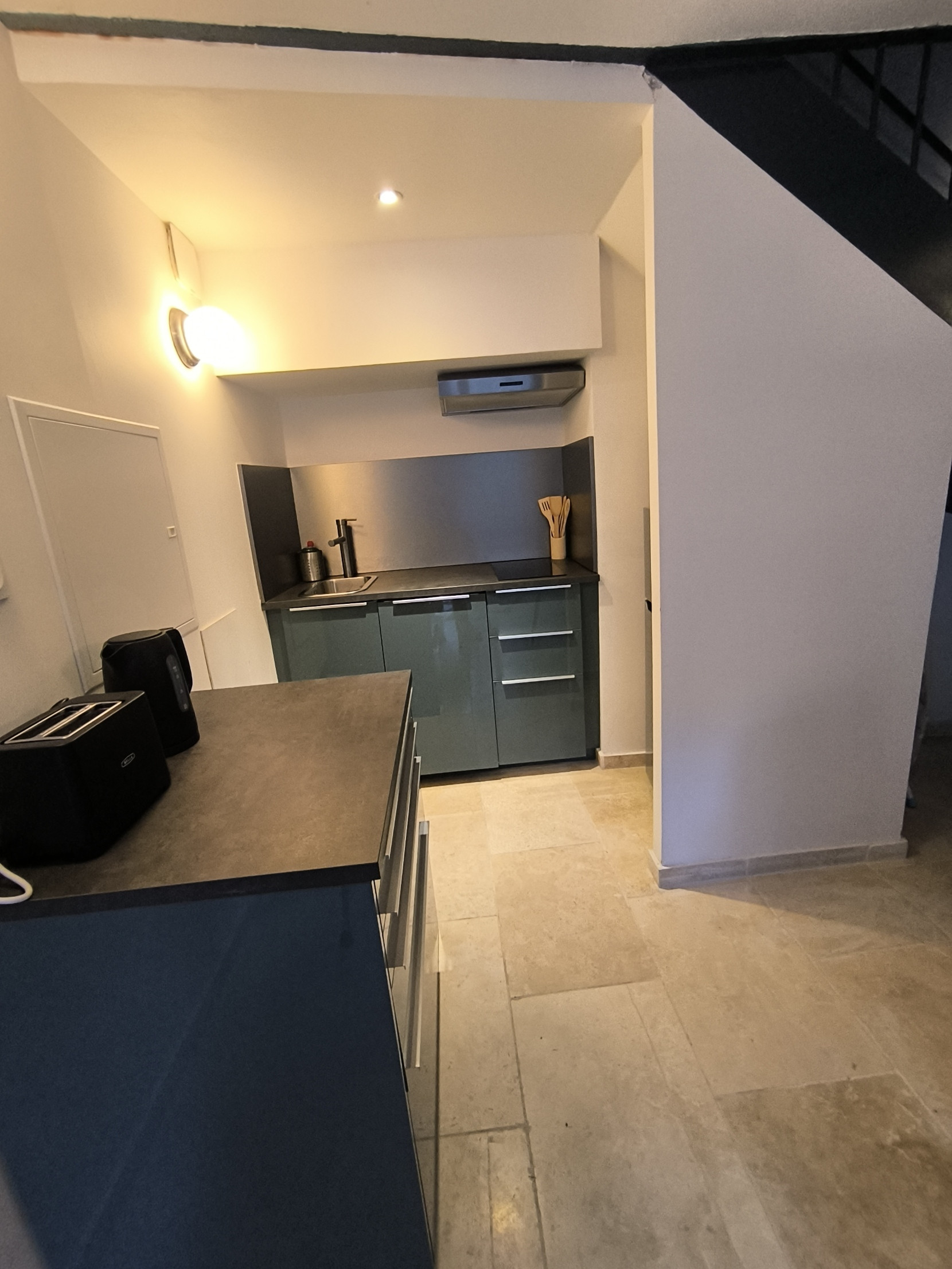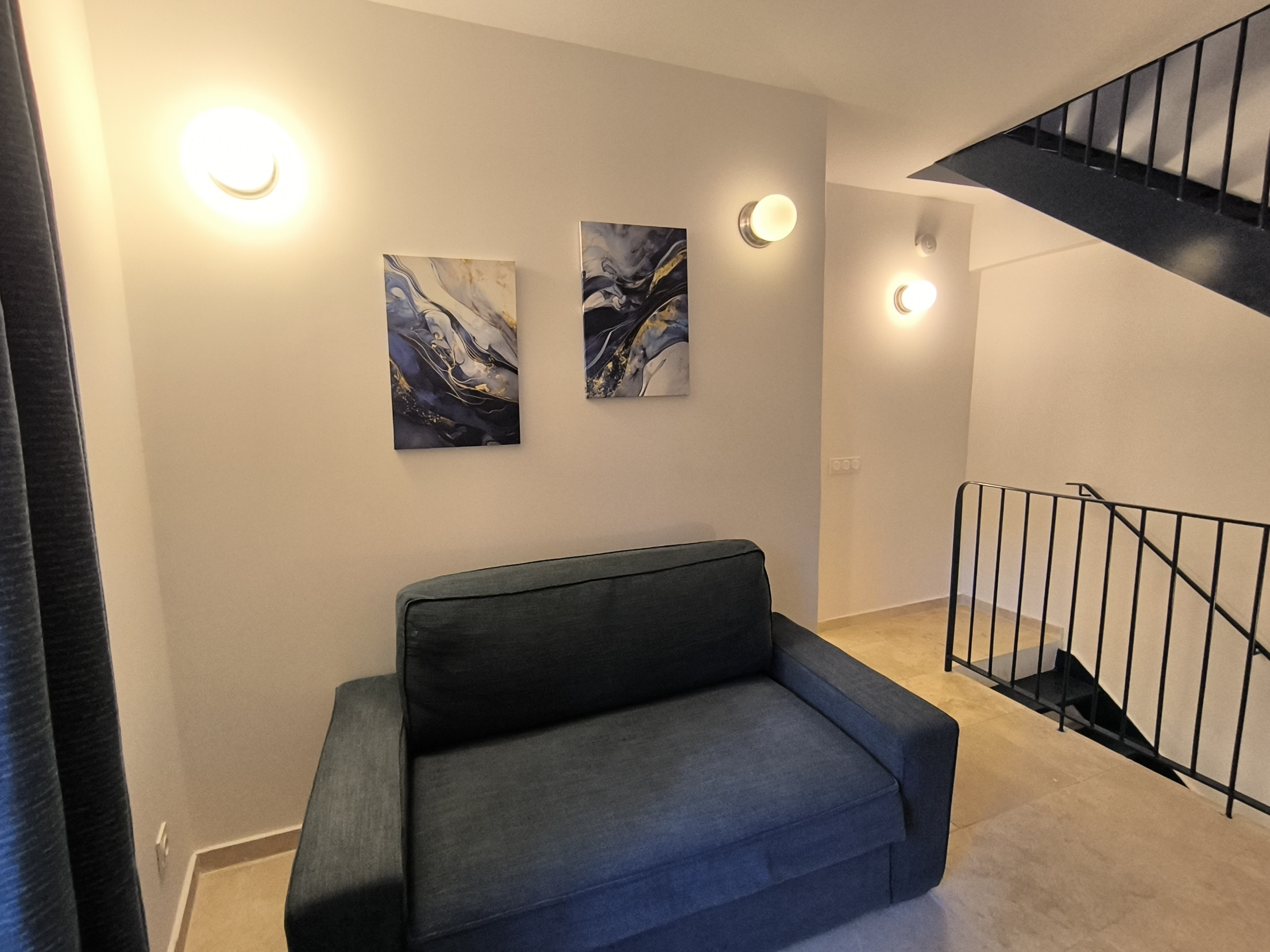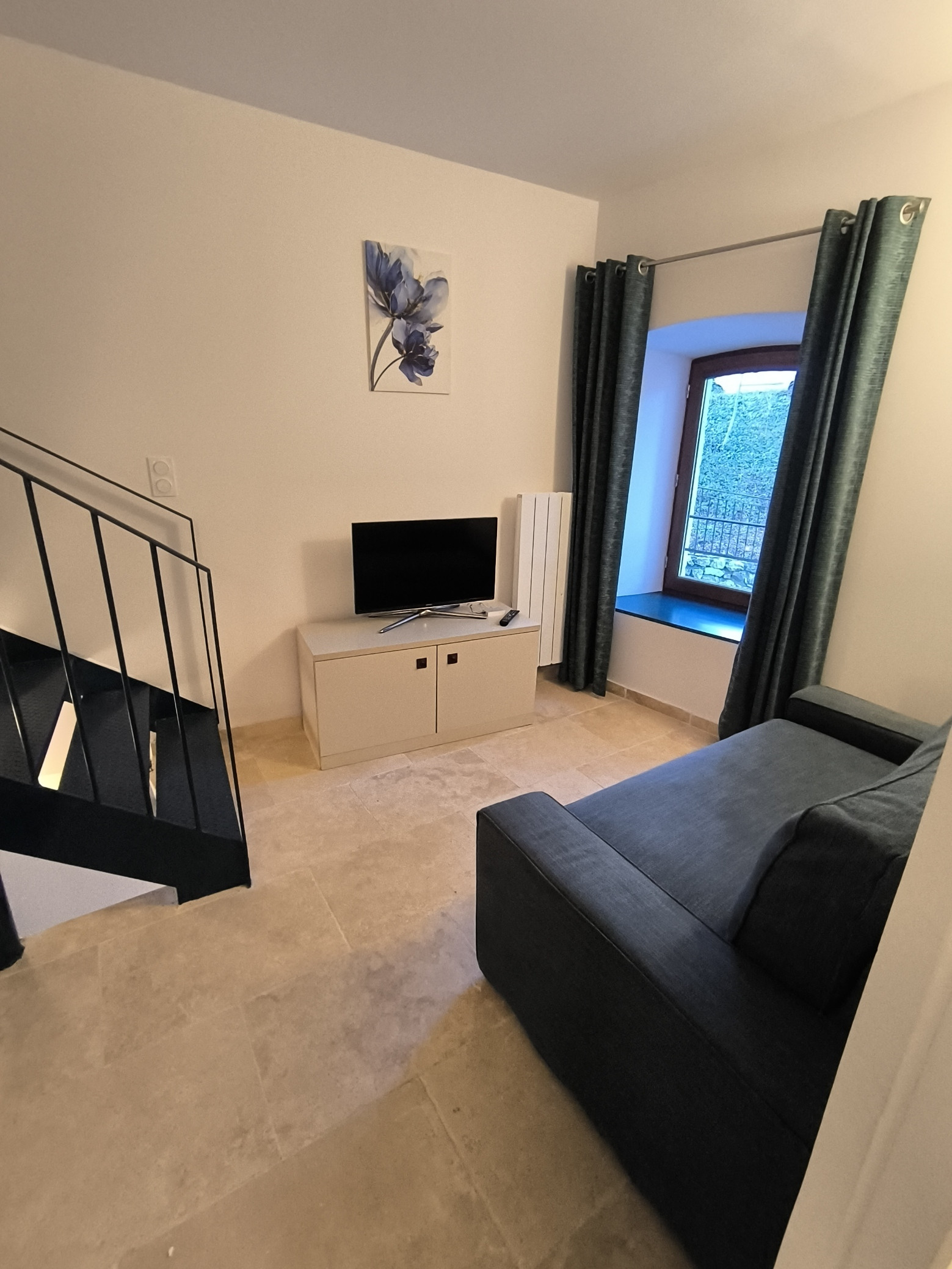 Installé dans un bâtiment de caractère mêlant pierre, poutres apparentes et beaux volumes, le logement propose une atmosphère chaleureuse et confortable, idéale pour se ressourcer.