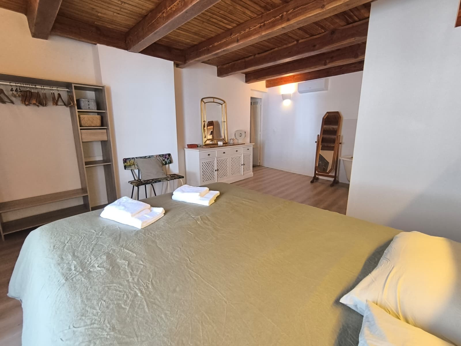 La maison offre des espaces de vie conviviaux et fonctionnels, avec tout le confort nécessaire pour un séjour agréable. Elle est équipée du wifi, d’une télévision, de la climatisation, du chauffage électrique ainsi que de deux ventilateurs pour les périodes plus chaudes. Vous trouverez également un lave-linge, un fer à repasser et un sèche-cheveux.