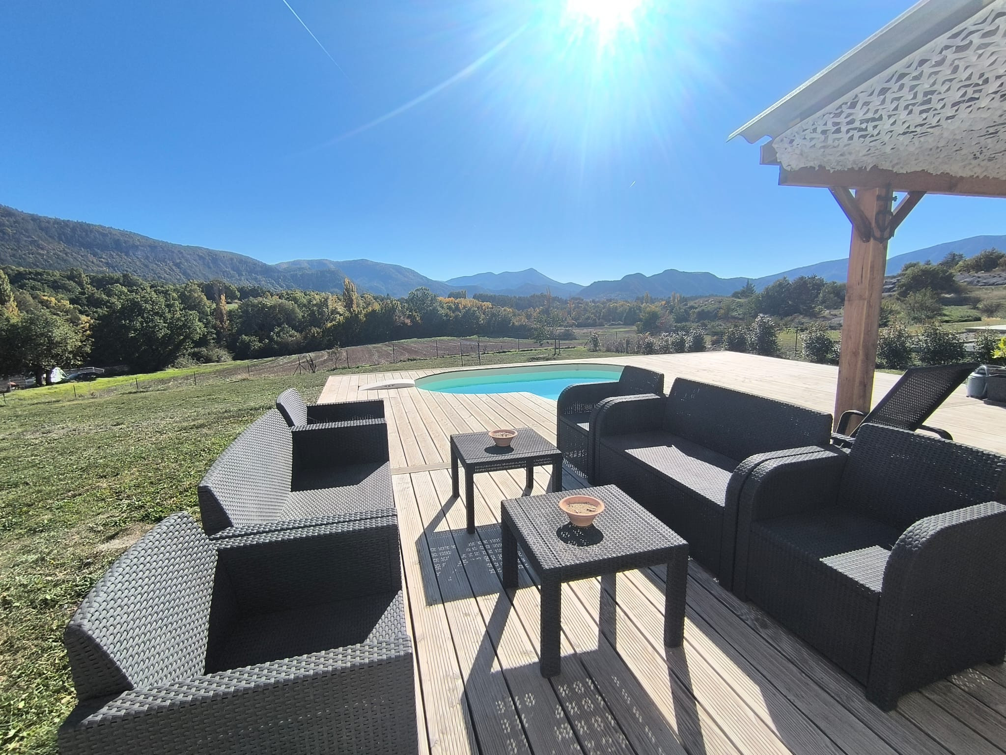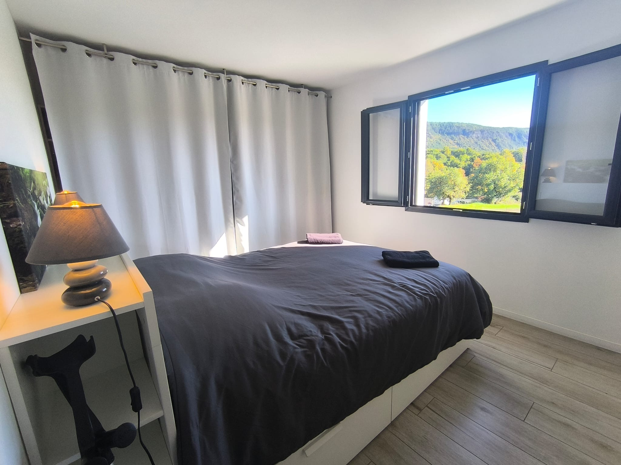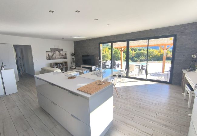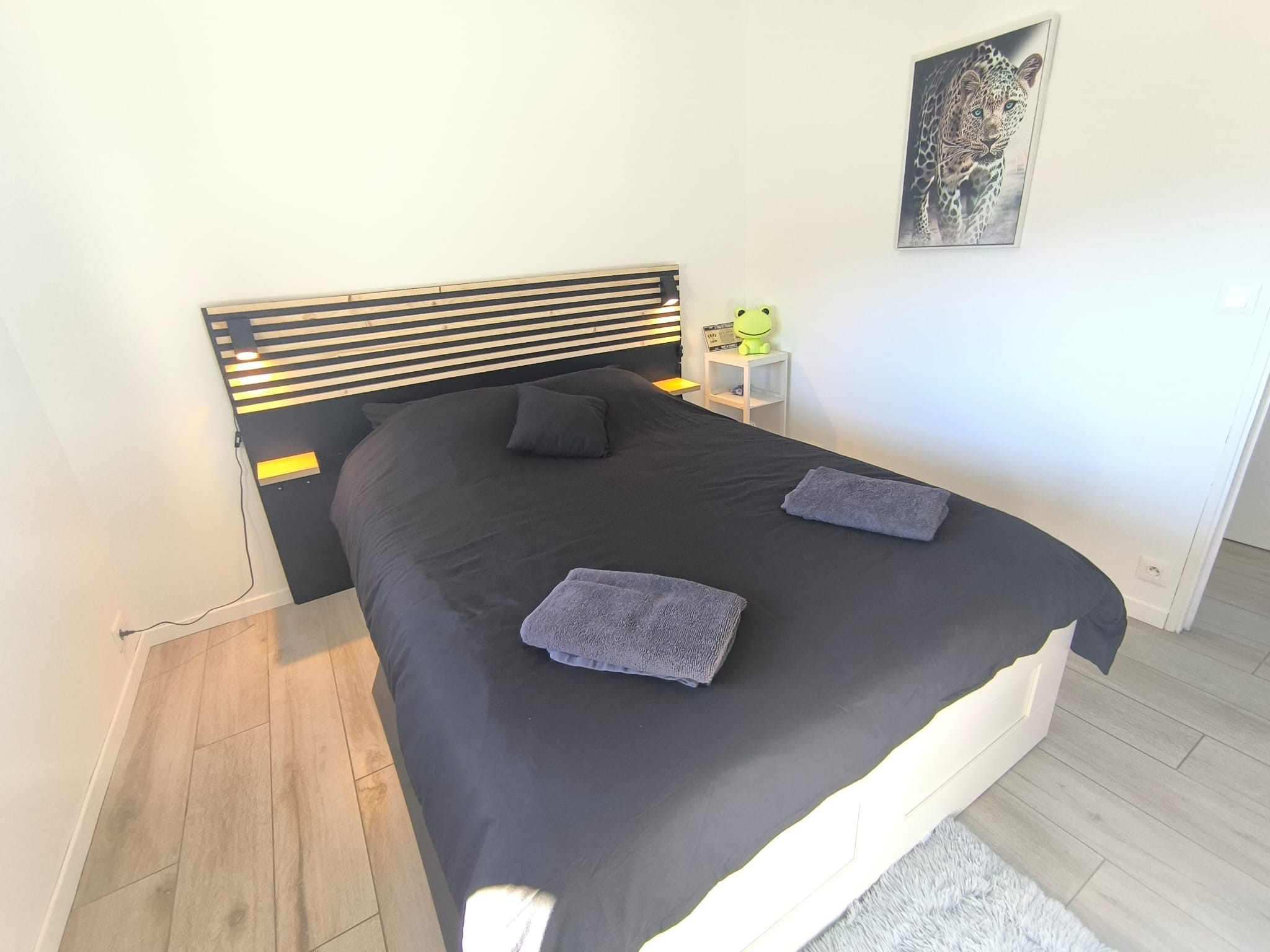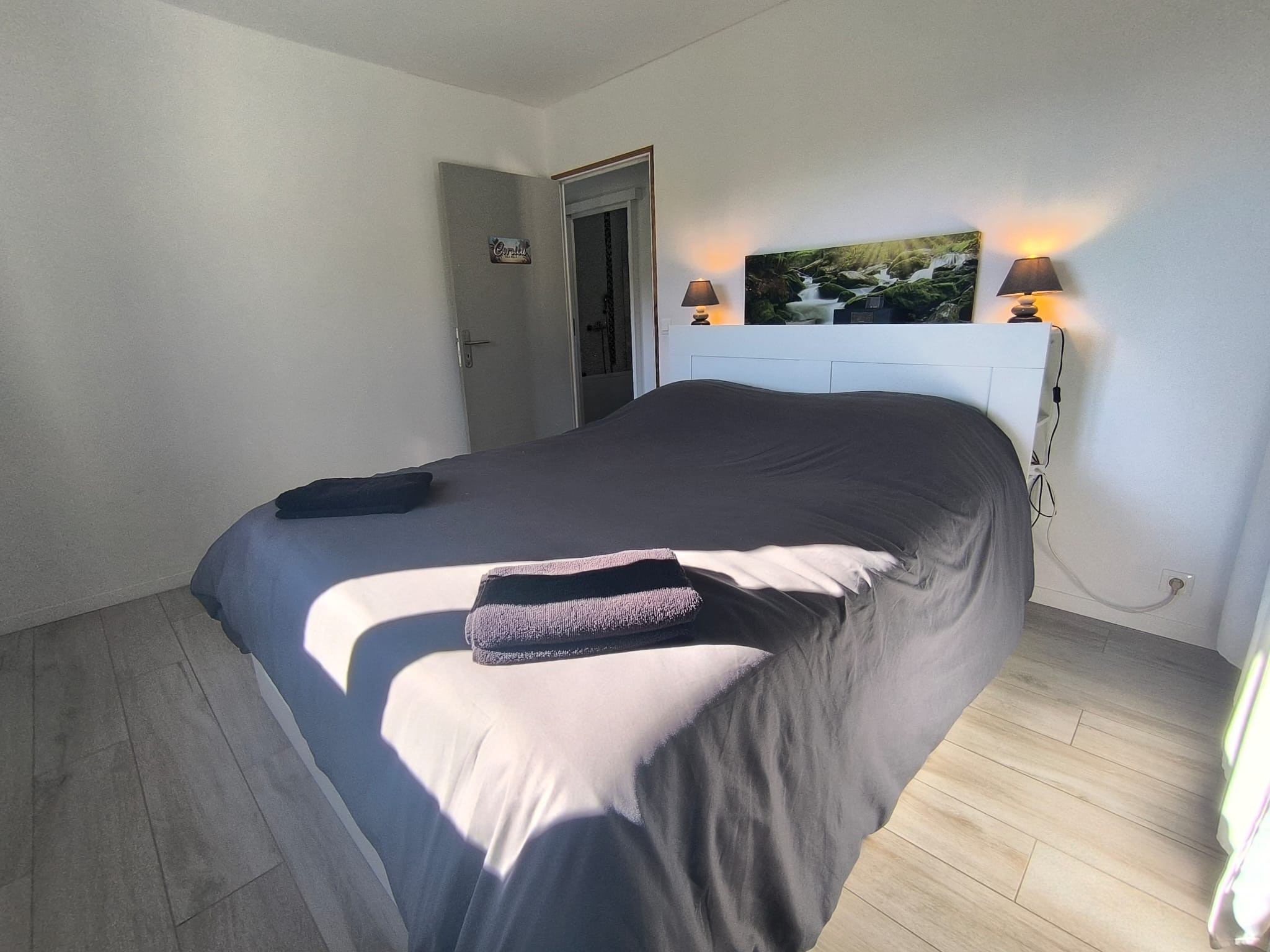 À l'intérieur, un salon lumineux ouvert sur l'extérieur et une cuisine américaine moderne (plaques à induction) entièrement équipée : réfrigérateur, congélateur, four, micro-ondes, lave-vaisselle, vaisselle/ustensiles, cafetière, grille-pain, bouilloire, presse-agrumes. Le quotidien est facile : Wi-Fi haut débit, TV, alarme, pompe à chaleur, lave-linge et sèche-linge, fer à repasser et sèche-cheveux ; et vous pouvez vous garer directement sur place. Tout est prêt pour un séjour confortable et sans complications. Réservez, détendez-vous... et profitez ! 🌿