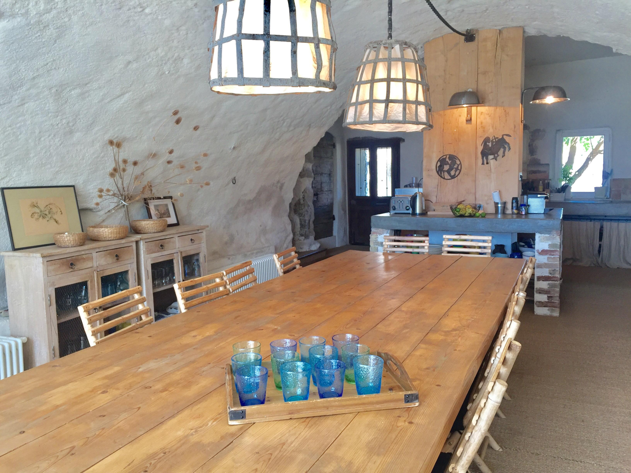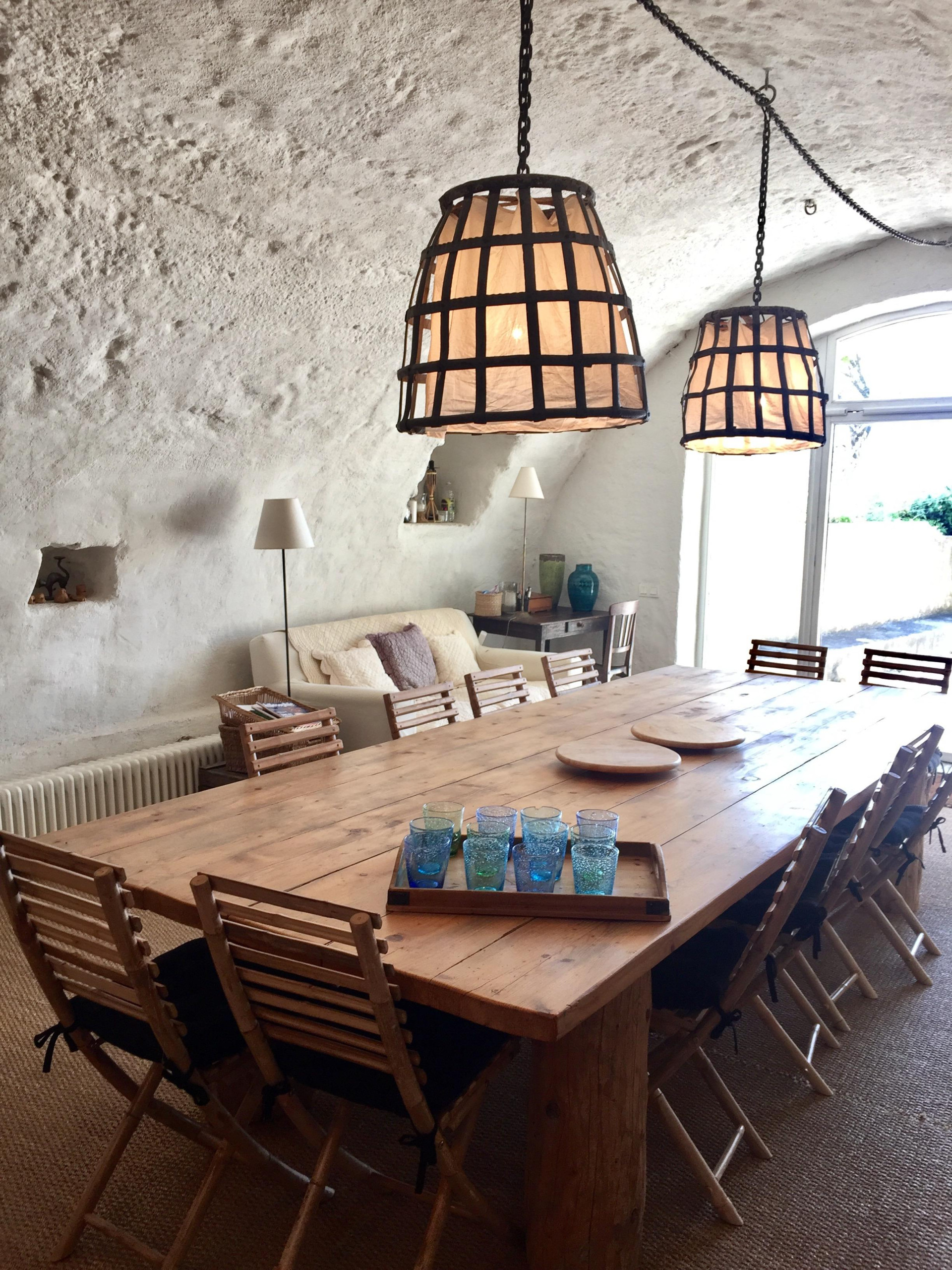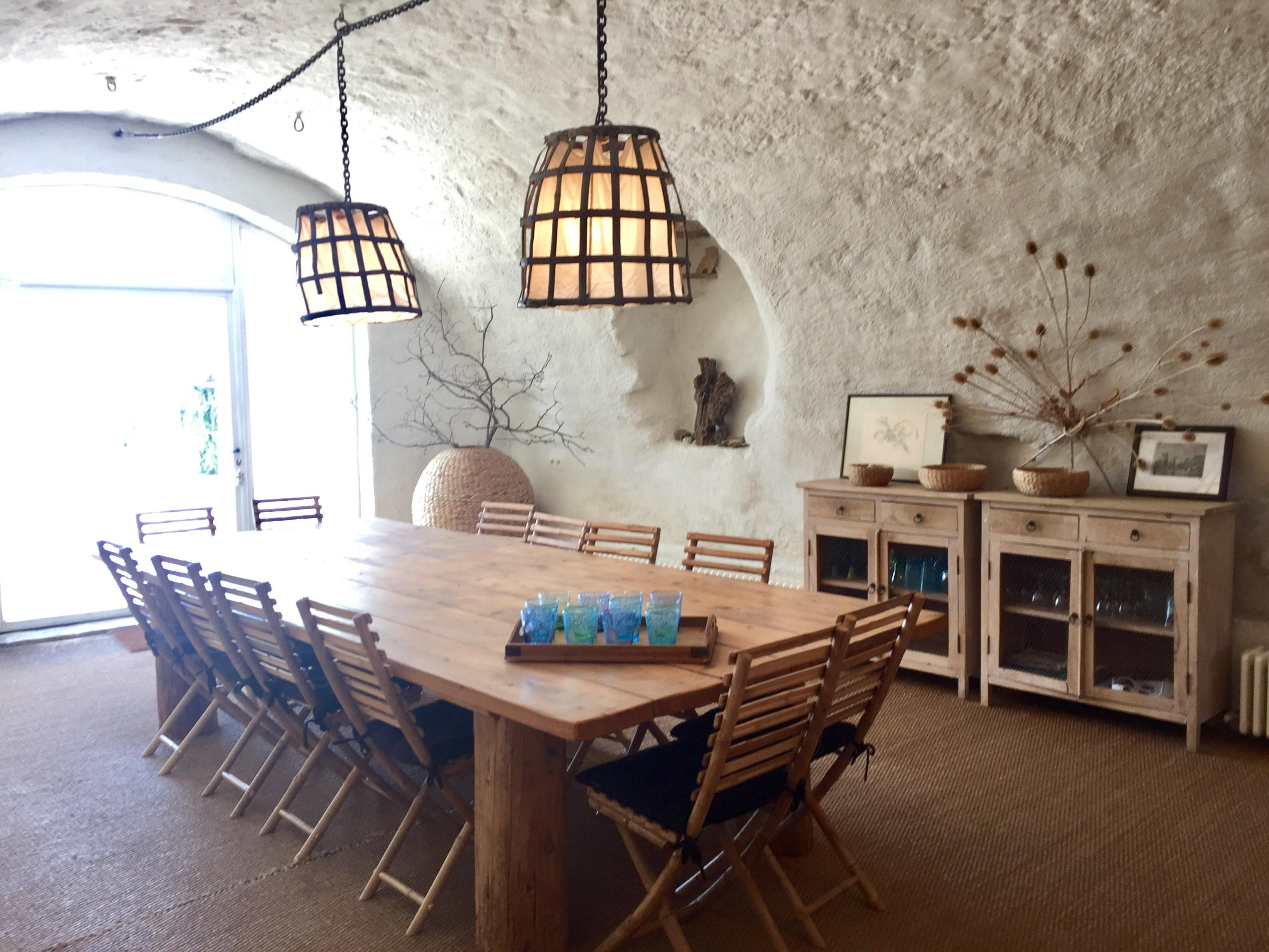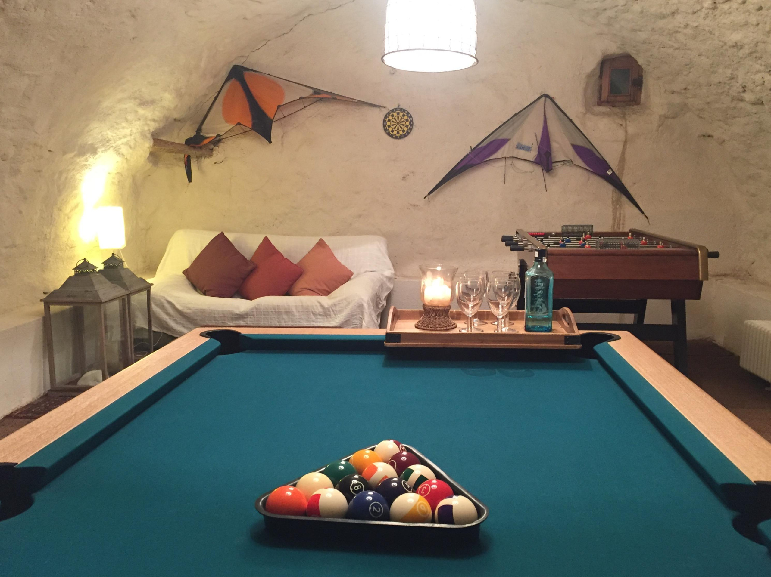 La maison s’organise autour d’espaces de vie généreux: une superbe salle à manger voûtée pour réunir tout le monde, un salon chaleureux aux tons naturels pour les soirées détendues, et une cuisine authentique (plans en béton, grand piano de cuisson) qui donne envie de cuisiner local avant d’allumer la plancha. Côté loisirs, la salle de jeux voûtée met l’ambiance avec billard, baby-foot, DVD et jeux de société; dehors, un siège-hamac suspendu invite à la sieste à l’ombre.